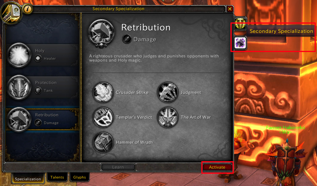 Lv10でひとつめのSpecを選んだあと、Lv30になってDualSpecを有効にすることでふたつめのSpecを選ぶことができるようになります。
